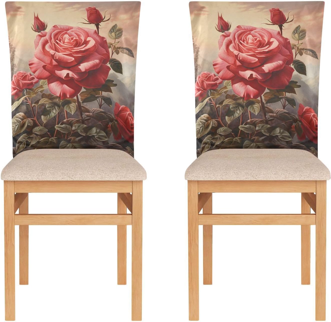Chair Cover Material made of polyester,comfortable and soft to touch,reusable and suitable for long term use Features easy to install and remove, tie rope design at the bottom,machine washable Stylish Chair Decoration With beautiful pattern,it can be used for family party/ birthday party/wedding/ holiday party to add atmosphere, also can be used for chair decoration in living room, dorm, kitchen dining room,bedroom to bring protection to the chair while avoiding stains to dirty the chair back. Easy To Care Machine washable, Not washing with hot water, Not bleaching