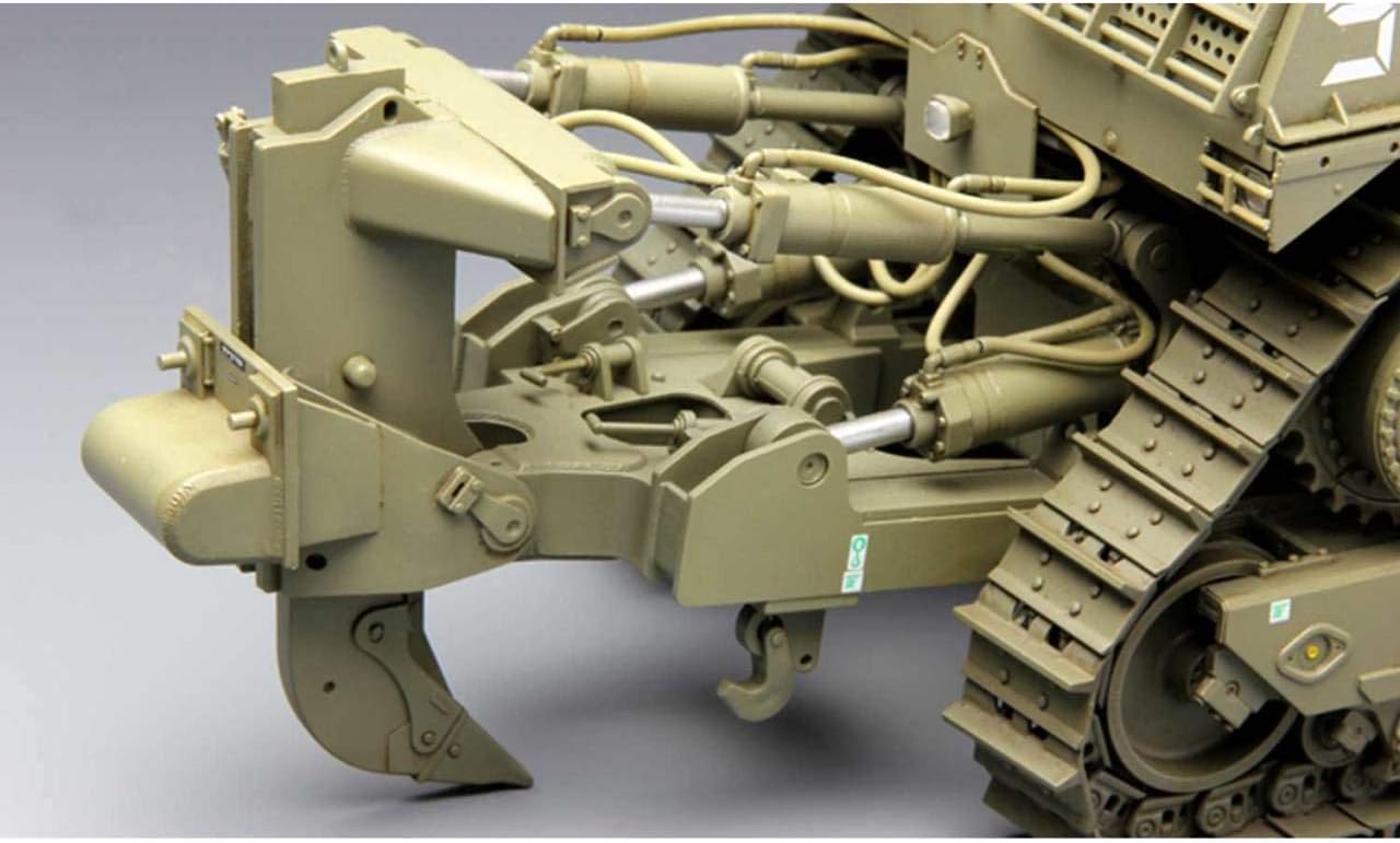 Product Description This 1/35 scale plastic model kit of D9R armoured bulldozer perfectly represents mechanical beauty and weight of the real vehicle. Workable dozer blade and ripper are precisely and accurately modelled; rich cab interior details are provided; door and window can be built in open or closed position; workable track links are included; U.S. Armed Forces and IDF painting schemes are provided. Total length: 247mm width: 126mm Set Contains: Contains parts to build one kit.